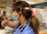 Intended to be used to hold the elastic straps of a surgical mask, to relieve the pressure of those on the ears. Can be used in the medical and other like fields and can be washed.
