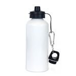 Sublimation White Aluminum Water Bottle, 600ml(20 oz) 8.25" x 9". Image area: 5.5" x 9"; Rubber stick-on bottom, O ring, extra stopper. Aluminum carabiner snap-on clip.